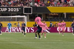 体育资讯06月30日讯 巴黎vs迈阿密第73分钟,苏亚雷斯争顶犯规,裁判出示黄牌。